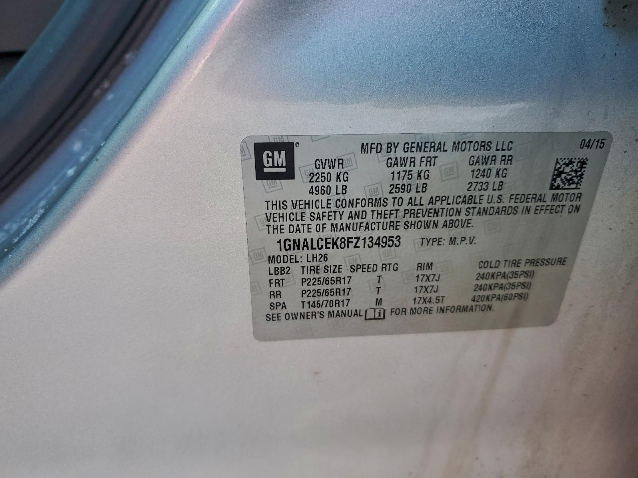 - ВИН: 1GNALCEK8FZ******