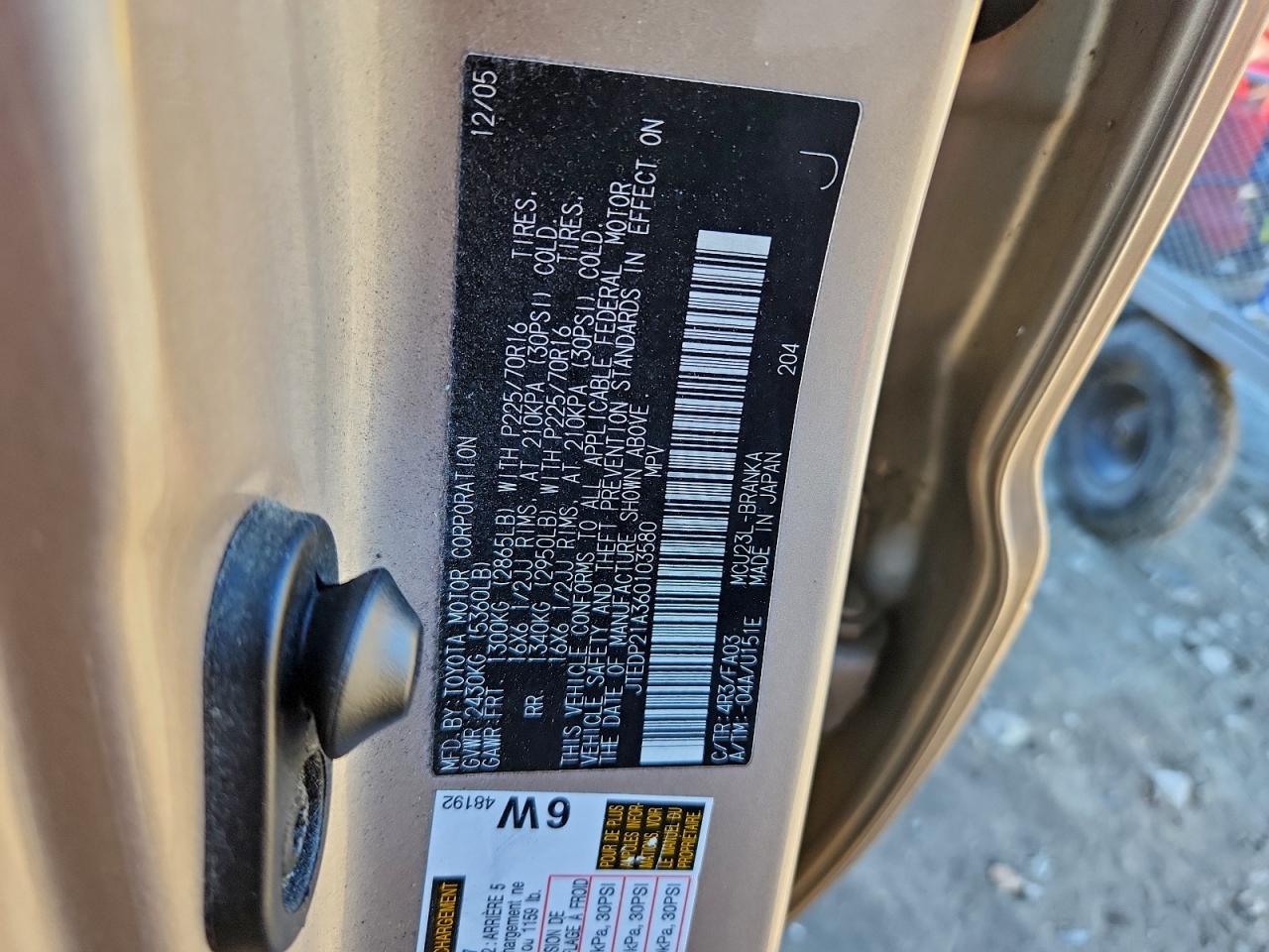 - ВИН: JTEDP21A360******