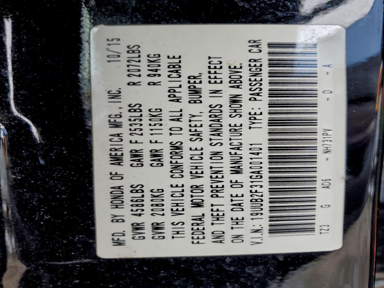 - ВИН: 19UUB2F31GA******