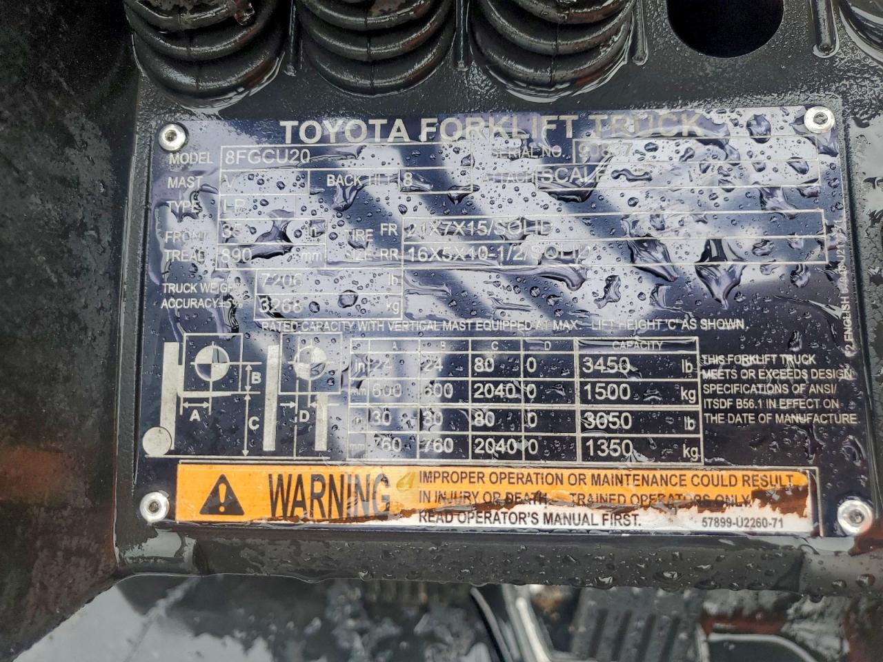 2018 TOYOTA 8FGCU20 FORKLIFT