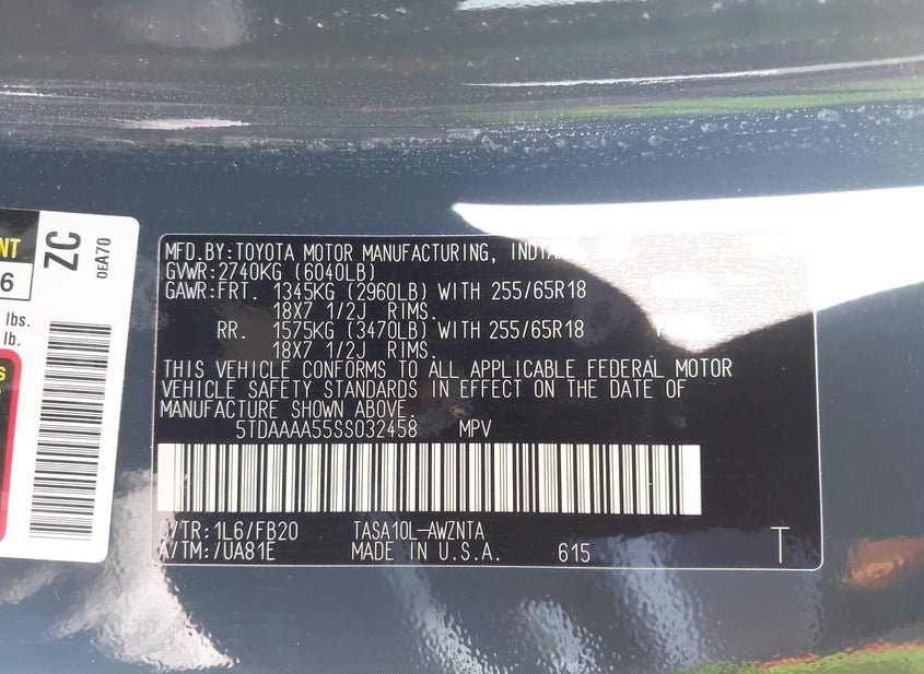 - VIN: 5TDAAAA55SS032458