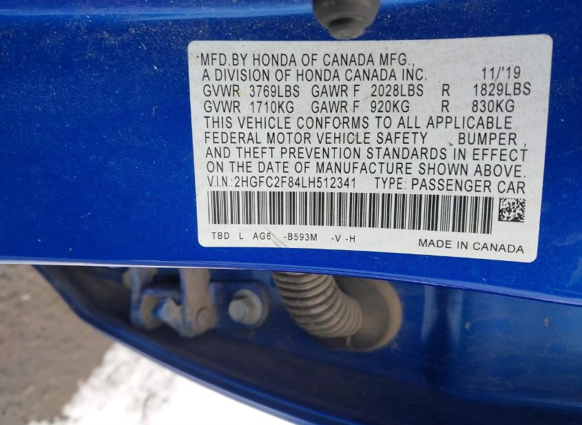 - VIN: 2HGFC2F84LH512341