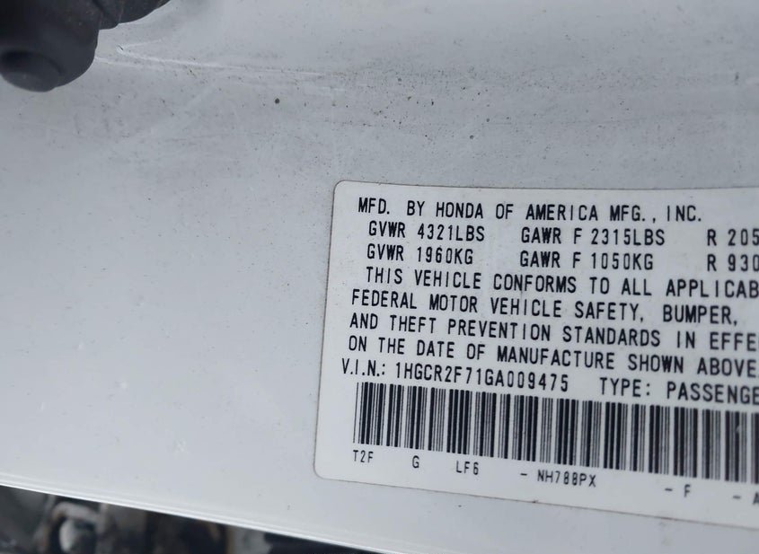 - VIN: 1HGCR2F71GA009475
