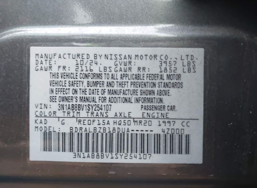 - VIN: 3N1AB8BV1SY254107