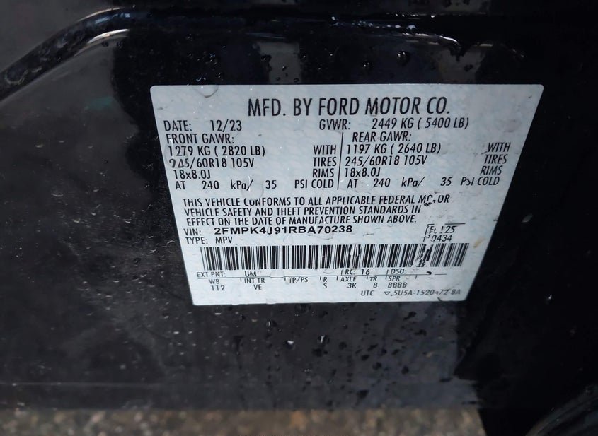 - VIN: 2FMPK4J91RBA70238