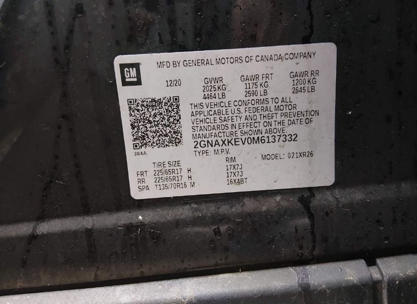- VIN: 2GNAXKEV0M6137332