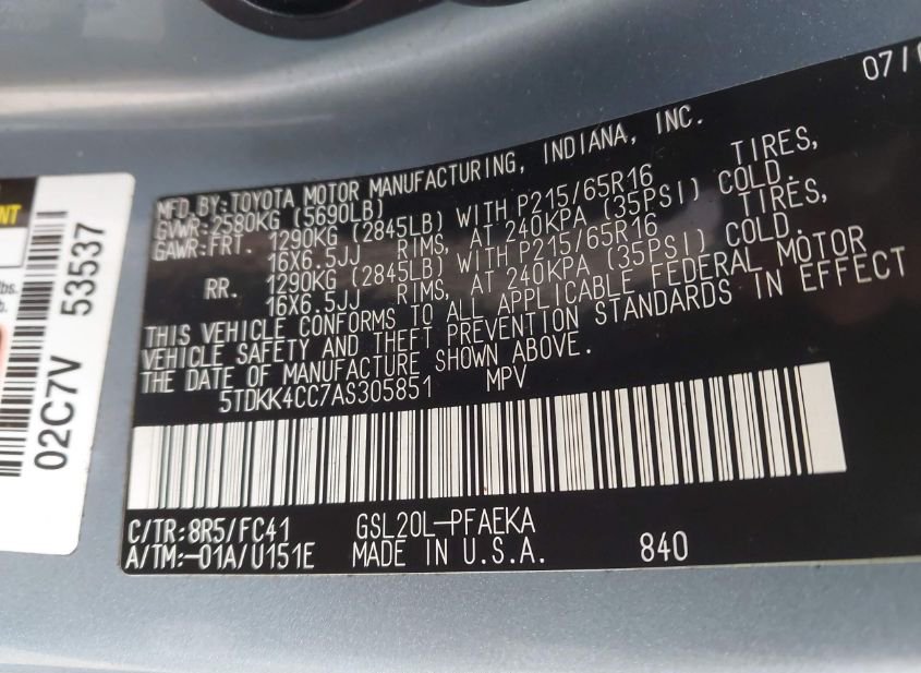 - VIN: 5TDKK4CC7AS305851