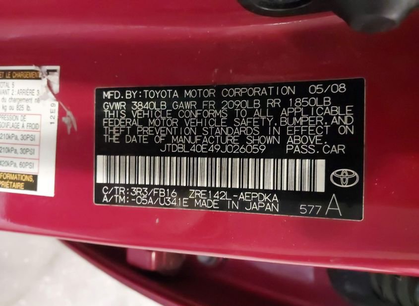 - VIN: JTDBL40E49J026059