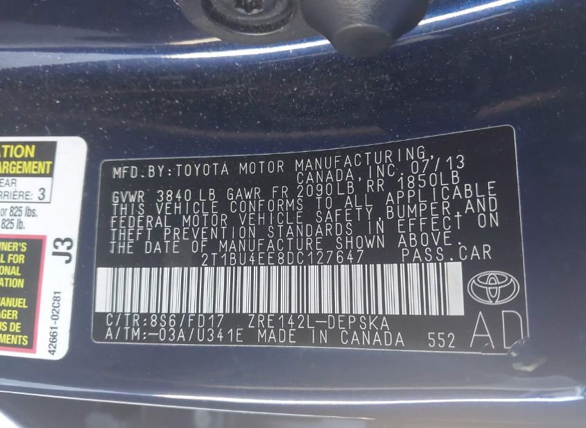 - VIN: 2T1BU4EE8DC127647