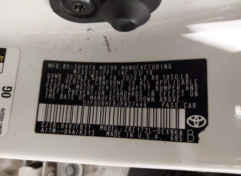 - VIN: 5YFBURHE8JP827446