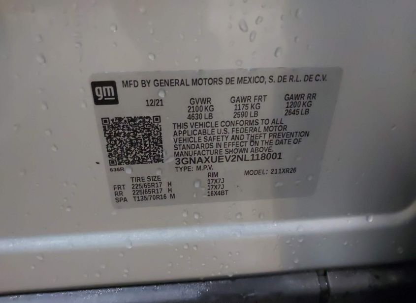 - VIN: 3GNAXUEV2NL118001