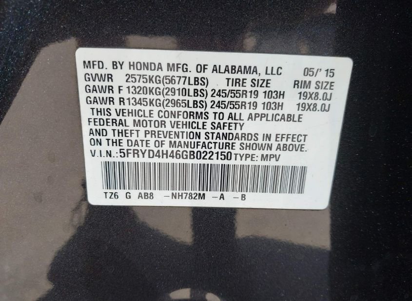 - VIN: 5FRYD4H46GB022150