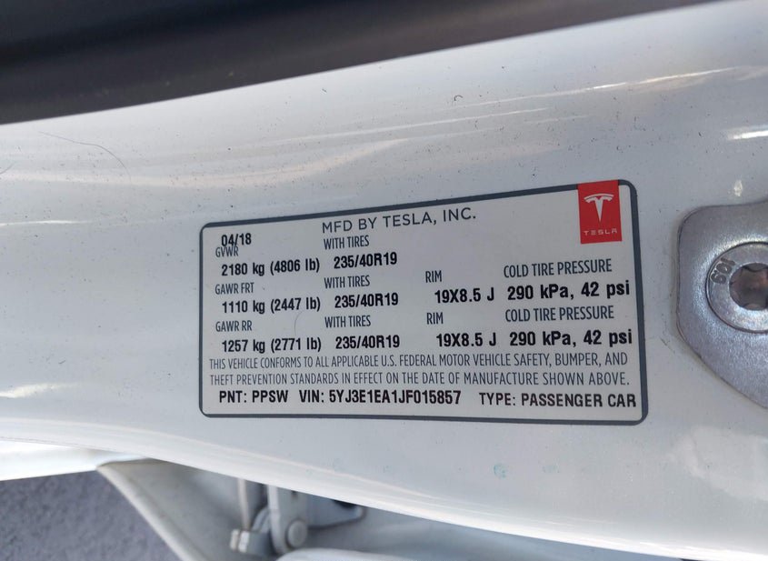 - VIN: 5YJ3E1EA1JF015857
