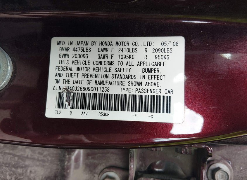 - VIN: JH4CU26609C011258