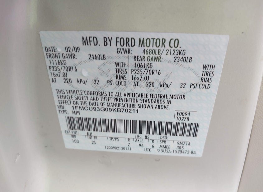 - VIN: 1FMCU93G09KB70211