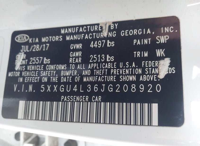 - VIN: 5XXGU4L36JG208920