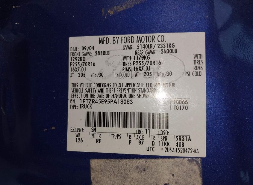 - VIN: 1FTZR45E95PA18083