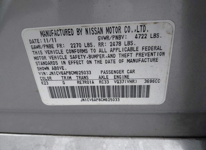 - VIN: JN1CV6AP8CM625033