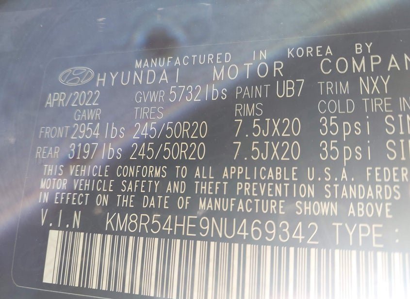 - VIN: KM8R54HE9NU469342