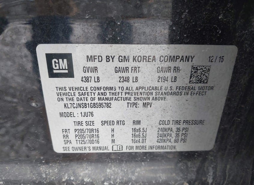 - VIN: KL7CJNSB1GB595782
