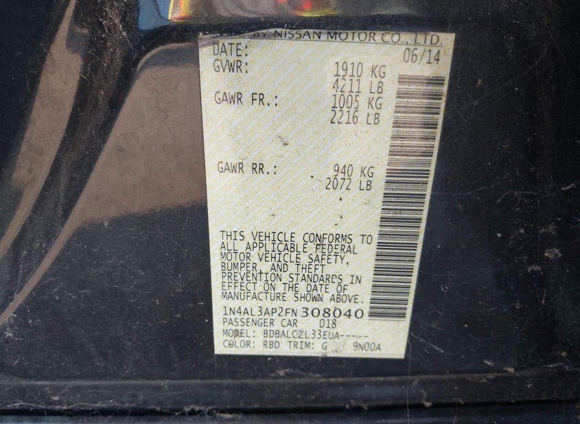 - VIN: 1N4AL3AP2FN308040