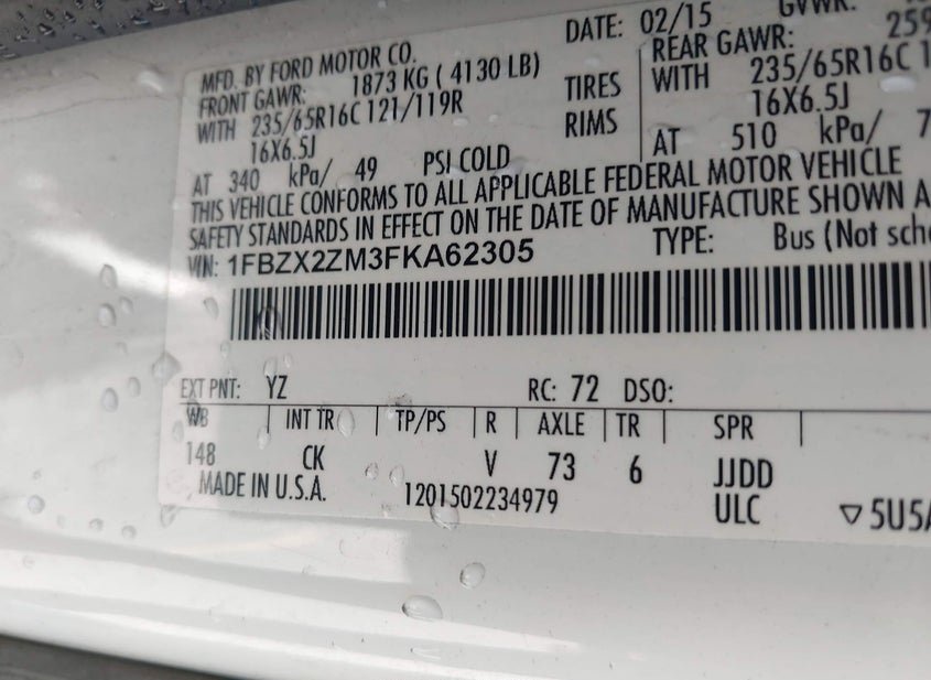 - VIN: 1FBZX2ZM3FKA62305