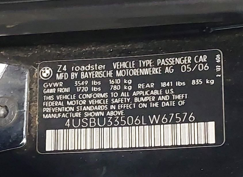 - Название лота: 2006 BMW Z4 3.0I