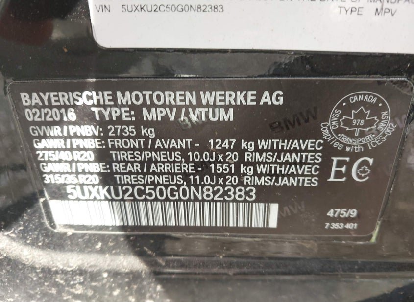 - VIN: 5UXKU2C50G0N82383