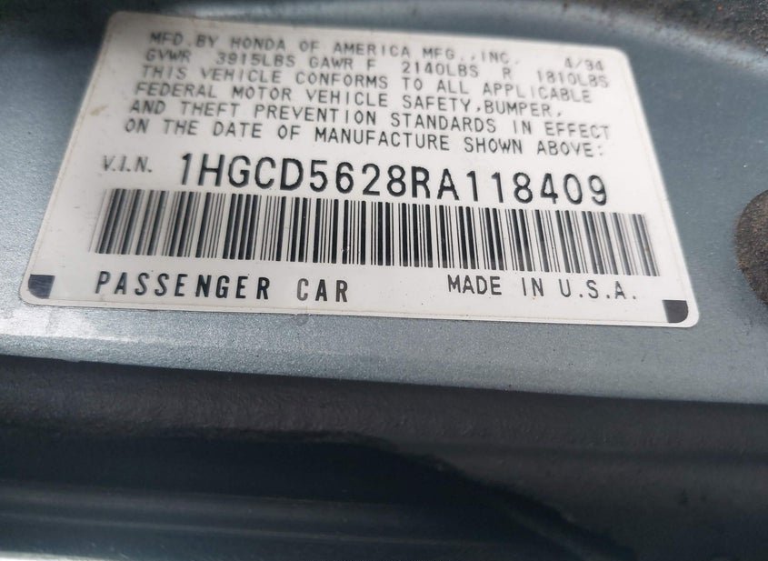 - VIN: 1HGCD5628RA118409