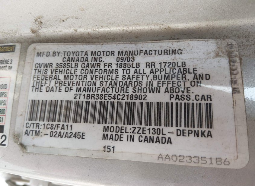 - VIN: 2T1BR38E54C218902