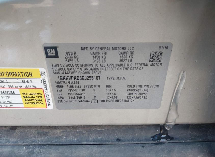 - VIN: 1GKKVPKD3GJ255107