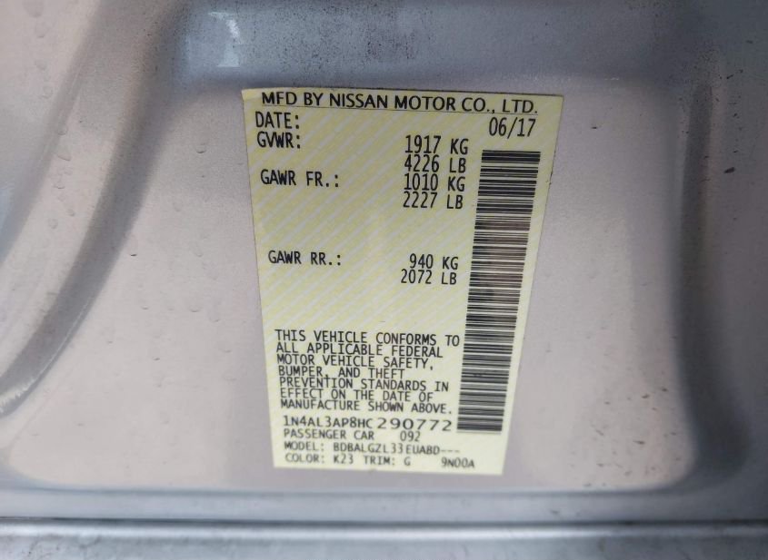 - VIN: 1N4AL3AP8HC290772