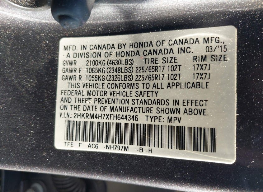 - VIN: 2HKRM4H7XFH644346
