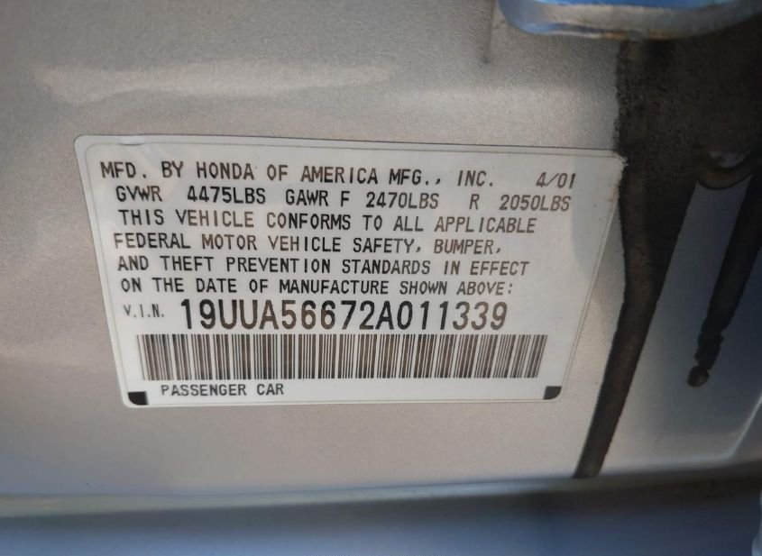 - VIN: 19UUA56672A011339