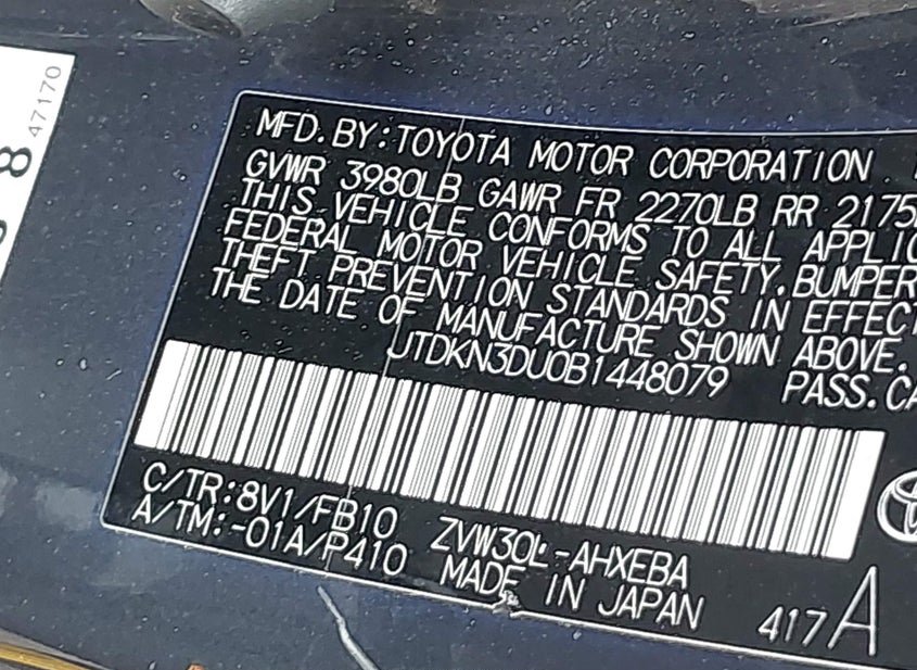 - VIN: JTDKN3DU0B1448079