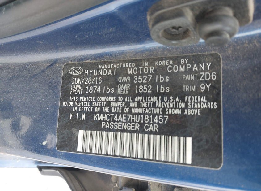 - VIN: KMHCT4AE7HU181457