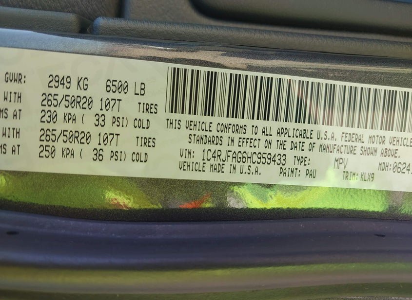 - VIN: 1C4RJFAG6HC959433