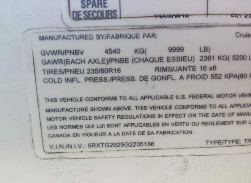 - VIN: 5RXTG2925G2205186