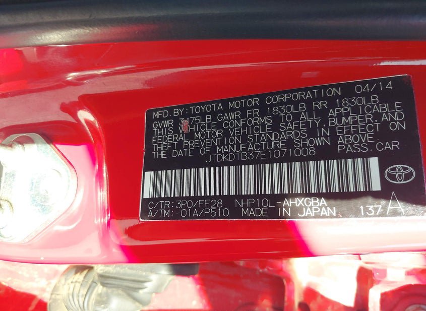 - VIN: JTDKDTB37E1071008