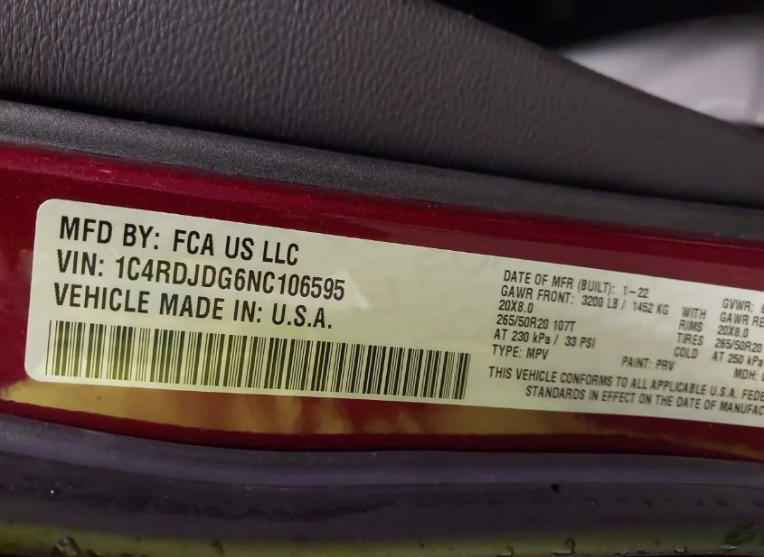 - VIN: 1C4RDJDG6NC106595