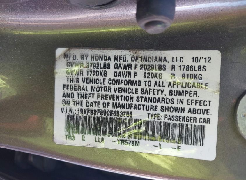 - VIN: 19XFB2F80CE383706