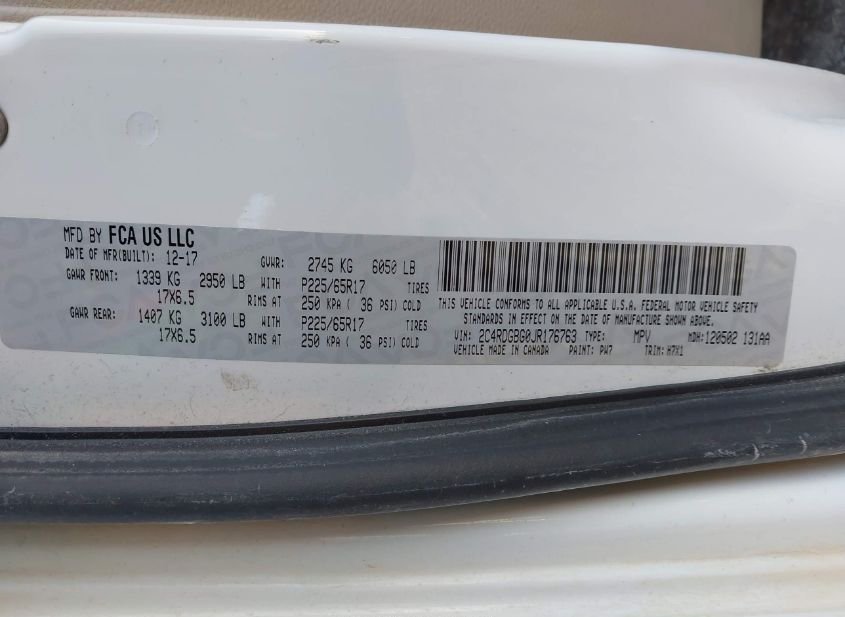 - VIN: 2C4RDGBG0JR176763