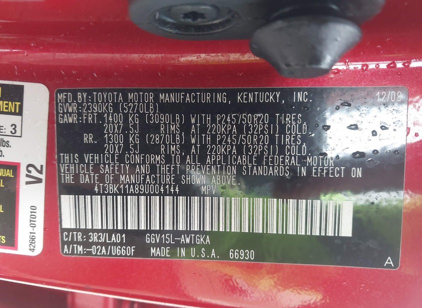 - VIN: 4T3BK11A89U004144