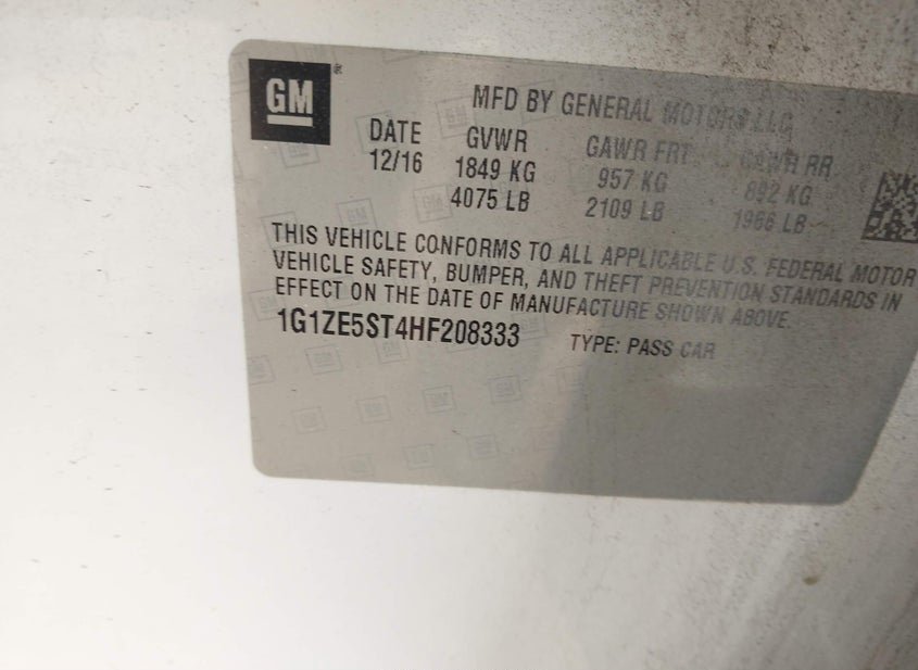 - VIN: 1G1ZE5ST4HF208333
