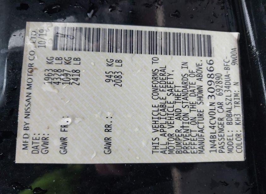 - VIN: 1N4BL4CV0LN309866