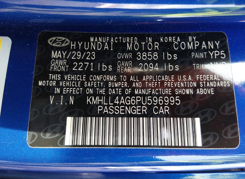 - VIN: KMHLL4AG6PU596995