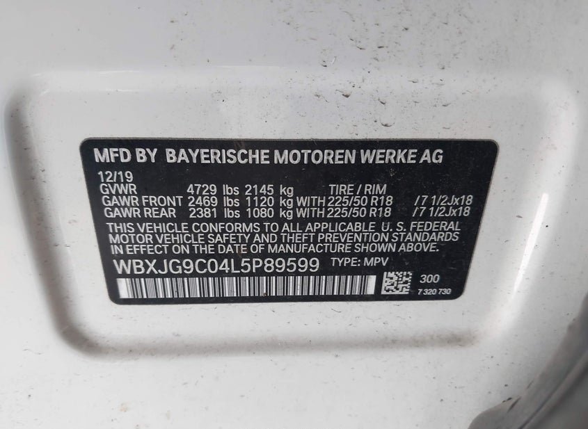 - VIN: WBXJG9C04L5P89599
