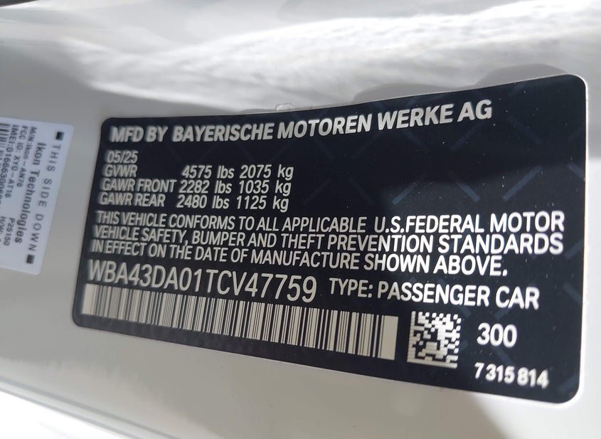 - VIN: WBA43DA01TCV47759