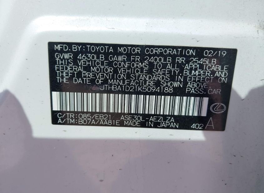 - VIN: JTHBA1D21K5094188