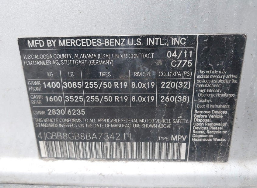 - VIN: 4JGBB8GB8BA734211